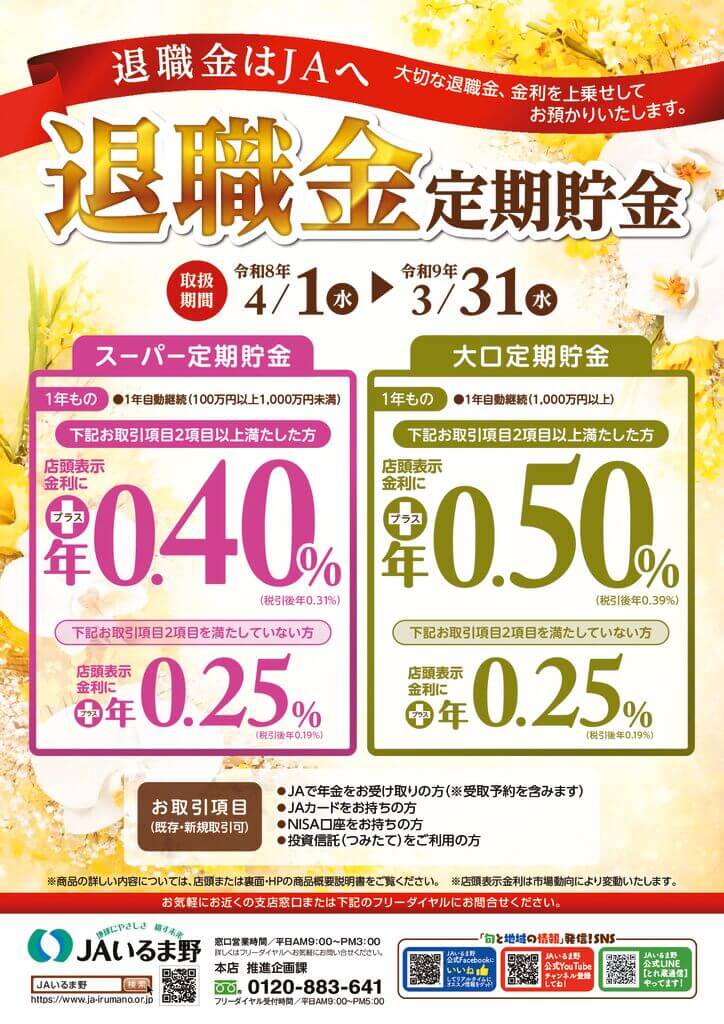 大切な退職金、金利を上乗せしてお預かりいたします。