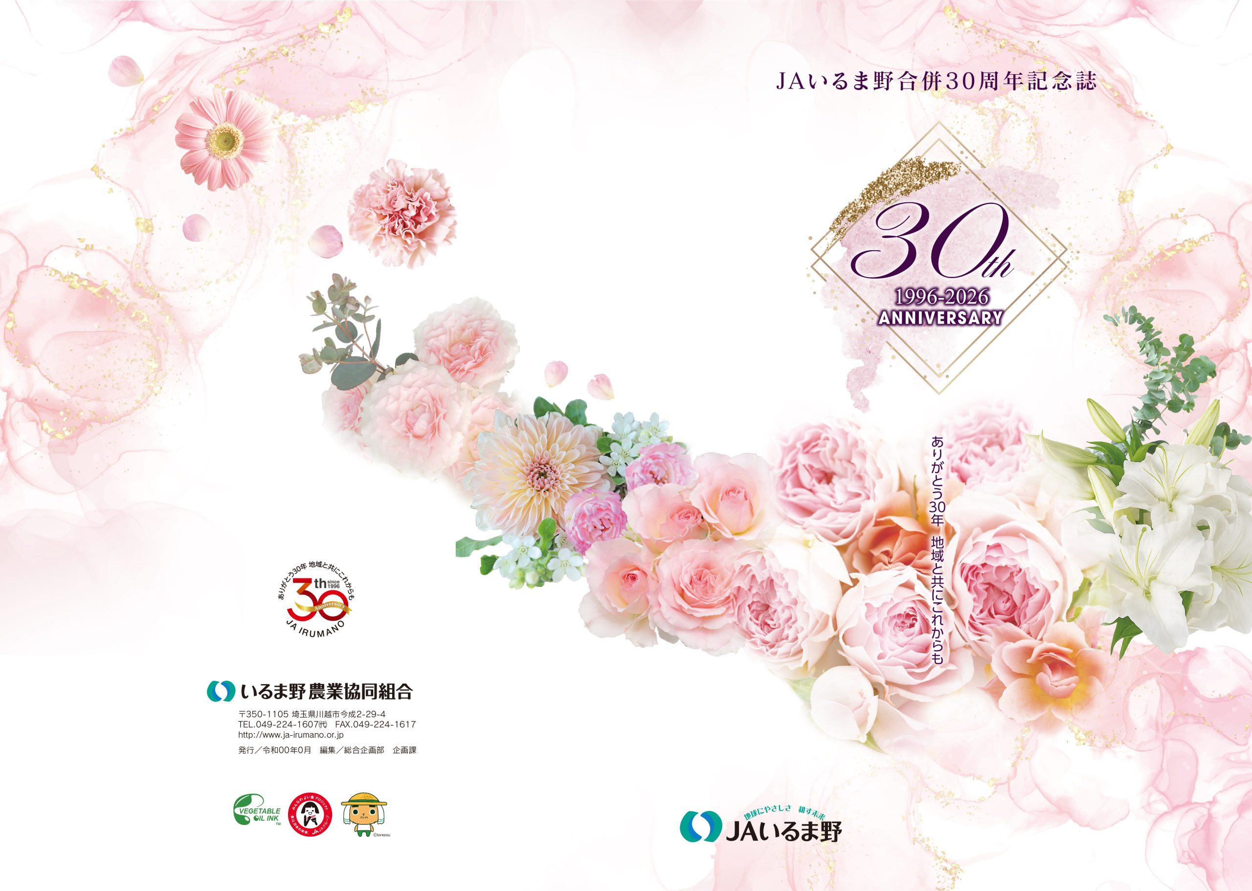 JAいるま野は、令和8年に合併30周年を迎えます。これもひとえに、長年にわたる皆さまのご支援とご協力のおかげであり、心より感謝申し上げます。