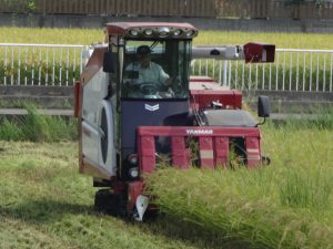 水稲の刈取りが適期を迎え、作業が始まりました。