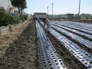 事務所の隣の圃場でニンニクの播種作業が始まりました。