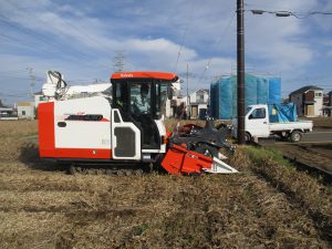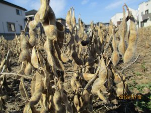 大豆が収穫適期を迎え、刈取り作業が始まりました。