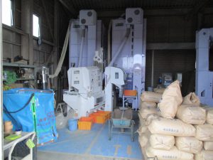 刈り取った大豆の乾燥調整が始まりました。