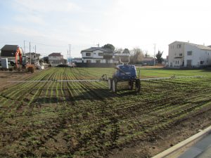 小麦圃場に雑草が確認されたため、防除を行いました。