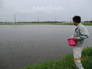 気温が暑くなると発生しやすくなり、植えた苗を巻き込んで溶かしてしまうため田んぼ全体を注意深く観察していきます。