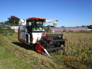 大豆収穫作業が始まりました。長雨の関係で播種作業が約1ヵ月遅れのスタートになってしまったにも関わらず、予想以上に収量がとれたと思います。