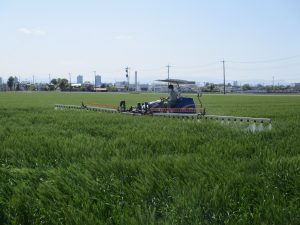 4/21 小麦圃場赤カビ病防除開始
