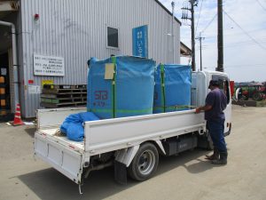 収穫した小麦は、坂戸カントリーにトラックで搬送します。