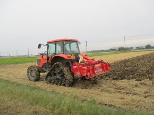 弾丸暗渠機で排水作業をした圃場の耕耘を開始しました。