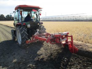 水田に作付けした小麦圃場に溝堀作業を行いました。