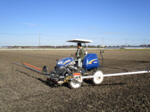 小麦播種直後の除草剤散布作業がスタートしました。