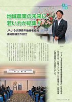 特集★★ 「JAいるま野青年後継者組織連絡協議会」の設立総会が10月11日、川越プリンスホテルで開催され、初代会長に諸口秀敏さんが就任しました。 総会には埼玉県川越農林振興センター所長、JA埼玉県中央会会長等を来賓に迎え、管内の後継者組織役員や宮岡組合長を始めとしたJA役職員が出席しました。 諸口会長は「新しい組織であるので、皆さんの協力をいただき地域農業の振興に頑張っていきます」と抱負を述べました。 これにより本協議会は355人の若手後継者が所属する大きな組織として活動を開始し、その若い力には管内の新たな原動力としての役割発揮が期待されます。今後は若手後継者の育成と情報交換の場として活動を広げ、農家とJAがお互いの創意工夫により力をあわせて地域農業を盛り上げていきます。JAいるま野青年後継者組織連絡協議会が設立諸口会長地域農業の未来に若い力が結集!!02「いるま野」2016年 12月号