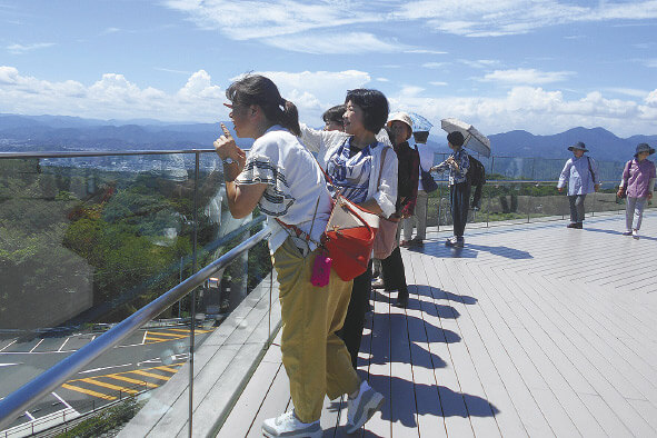 川越女性部(石川成子部長)は7月10~11日、一泊二日の親睦旅行を開催し、バス3台に分かれて部員94人が参加しました。初日は日本平山頂にある展望回廊の夢テラスで、富士山をはじめ駿河湾、静岡市内、伊豆半島などを眺望した他、わさび工場を見学しました。2日目は「KADODE OOIGAWA」でお買い物やギネス世界一の木造歩道橋「蓬莱橋」を観光しました。参加者は「天候にも恵まれ楽しかった」と話していました。