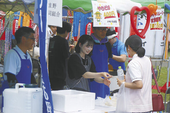 会場では「JAいるま野音頭」や「お米ありがとう音頭」などを踊ったほか、フラダンスを披露し会場を盛り上げました。また、模擬店のほか、キッチンカーを3台配置し、かき氷やたこ焼き、ホットドックにクレープなどを販売。近隣のお客様も大勢来場し、夏に相応しい賑わいのある納涼盆踊り大会となりました。