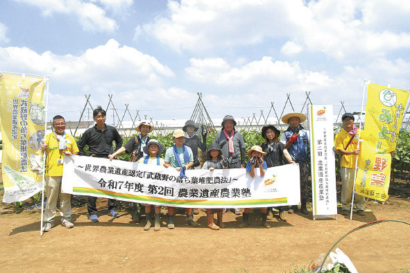 三芳町で8月3日、世界農業遺産認定記念事業の一環として「農業遺産農業塾」が行われました。同町を含む三富地域は2023年に伝統農法「武蔵野の落ち葉堆肥農法」が世界農業遺産に認定され、農業の振興に力を入れています。