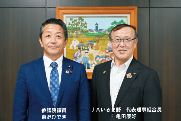 こうした中、JAでは組合員の皆さまにより良く農業に取り組んでもらうために、東野議員をお招きし、現在の農業が抱える諸問題について対談を行いました。