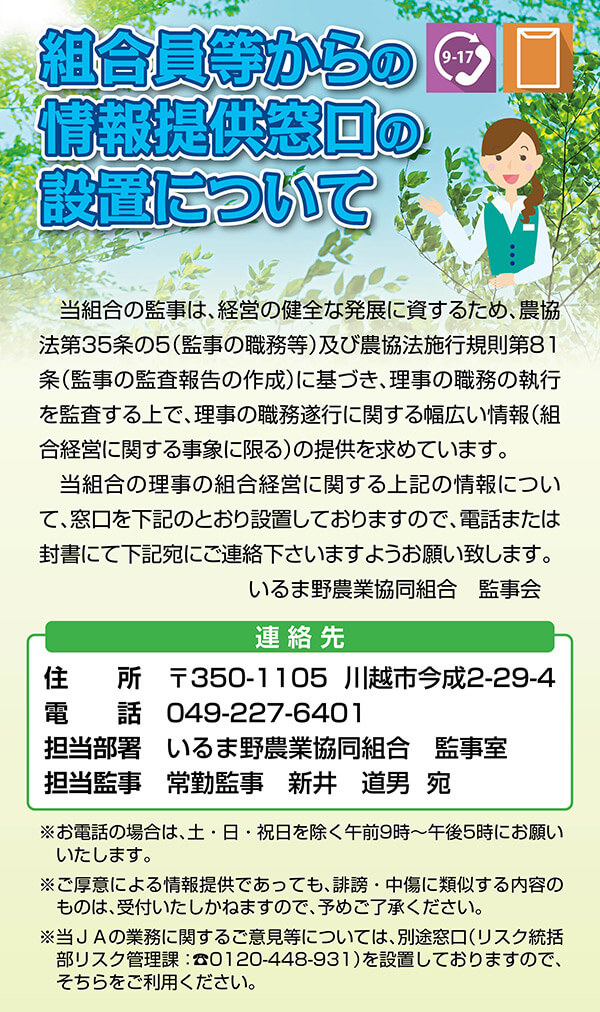 組合員等からの情報提供窓口の設置について、埼玉県内でJAのバンクを装う偽メールが急増中! など・・・