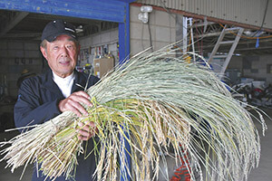 しめ縄用の稲わら。直売所に出荷したしめ縄は、珍しさからお客さんに驚かれることもあるそうです。