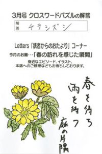 我が家の庭では、福寿草の花が一番に咲きます。次に咲くのは