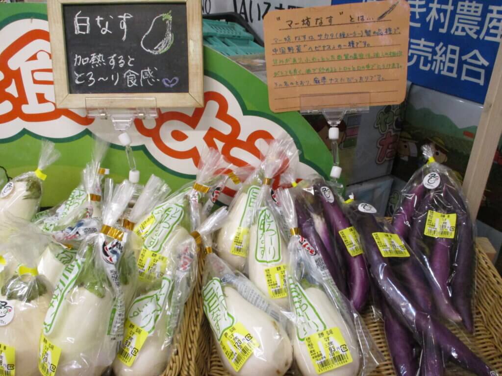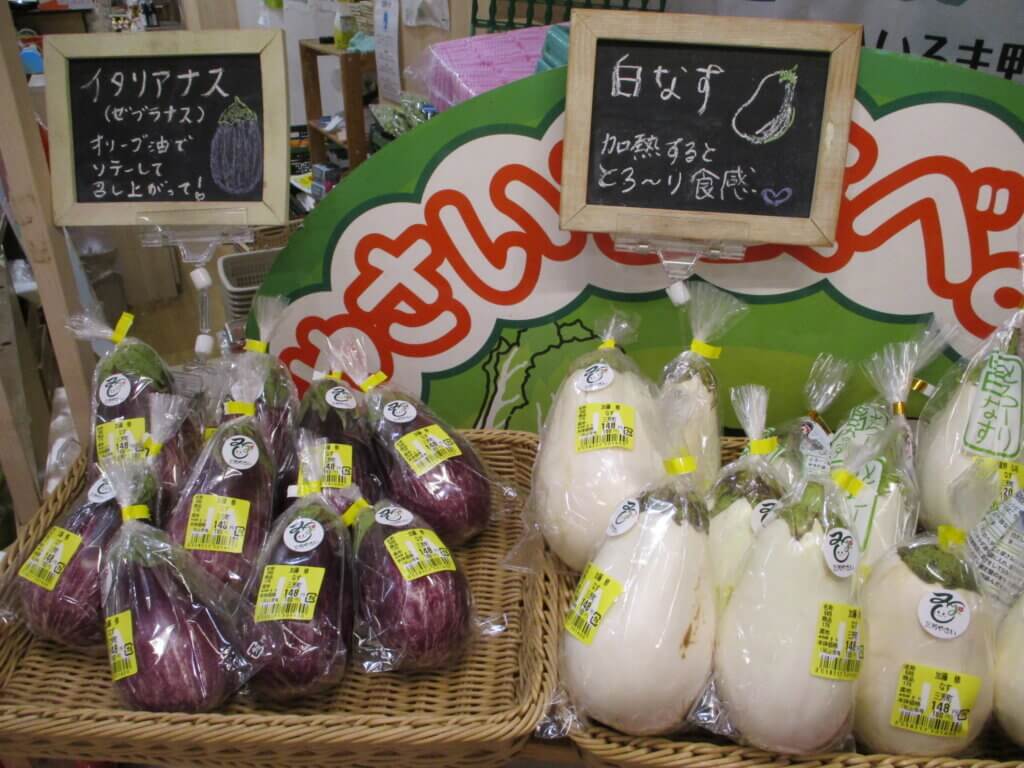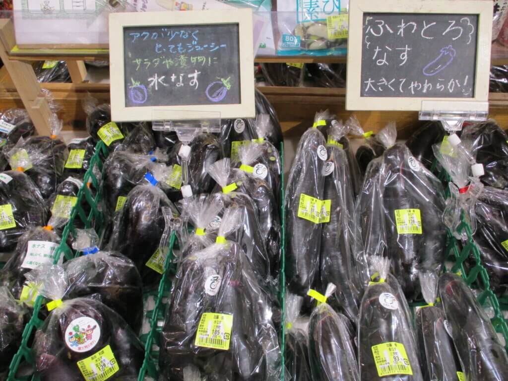 今が旬!様々な品種の茄子が店頭に並んでいます。