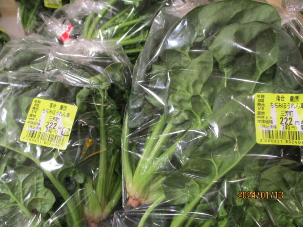 News & Information ニュース・お知らせ 過去のニュース・お知らせ > 入荷情報 2024年1月15日 「ちぢみほうれん草」「タアサイ」入荷しました! いるマルシェでは甘味の強いちぢみほうれん草や、カルシウムたっぷりのタアサイが入荷しております☺