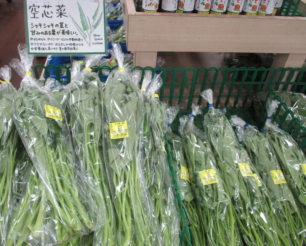News & Information ニュース・お知らせ 過去のニュース・お知らせ > 入荷情報 2025年7月31日 地場産の「空芯菜」が入荷しています! 中華料理や東南アジア料理で目にすることが増えた空芯菜。 シャキシャキとした茎と、加熱すると少しぬめりが出る葉が特徴です。 ぜひ一度ご賞味ください!