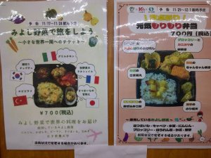 11/17より三芳町・女子栄養大学とコラボしたお弁当を期間限定販売いたします! 11/17~11/24は「世界一周弁当」11/25~12/1...