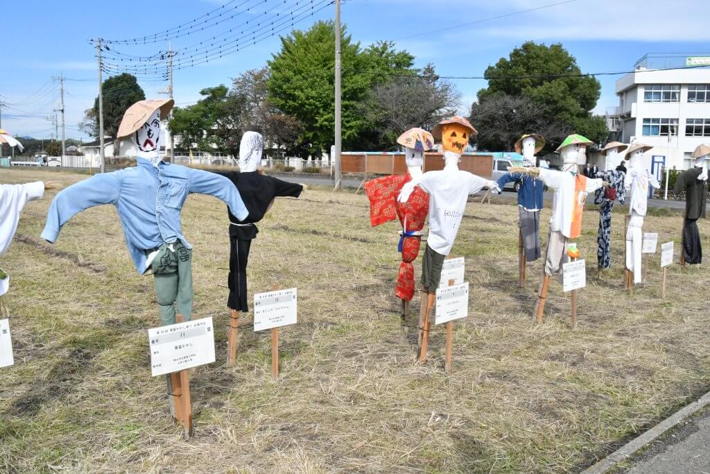 狭山市奥富地区の秋の風物詩「第38回奥富かかし祭り」が11月上旬に開催されました。学校や個人、企業などが作った素朴なかかしや話題の人物、アニメキャラクターなど約50体が並び、写真を撮る親子連れなど大勢の人で賑わいました。