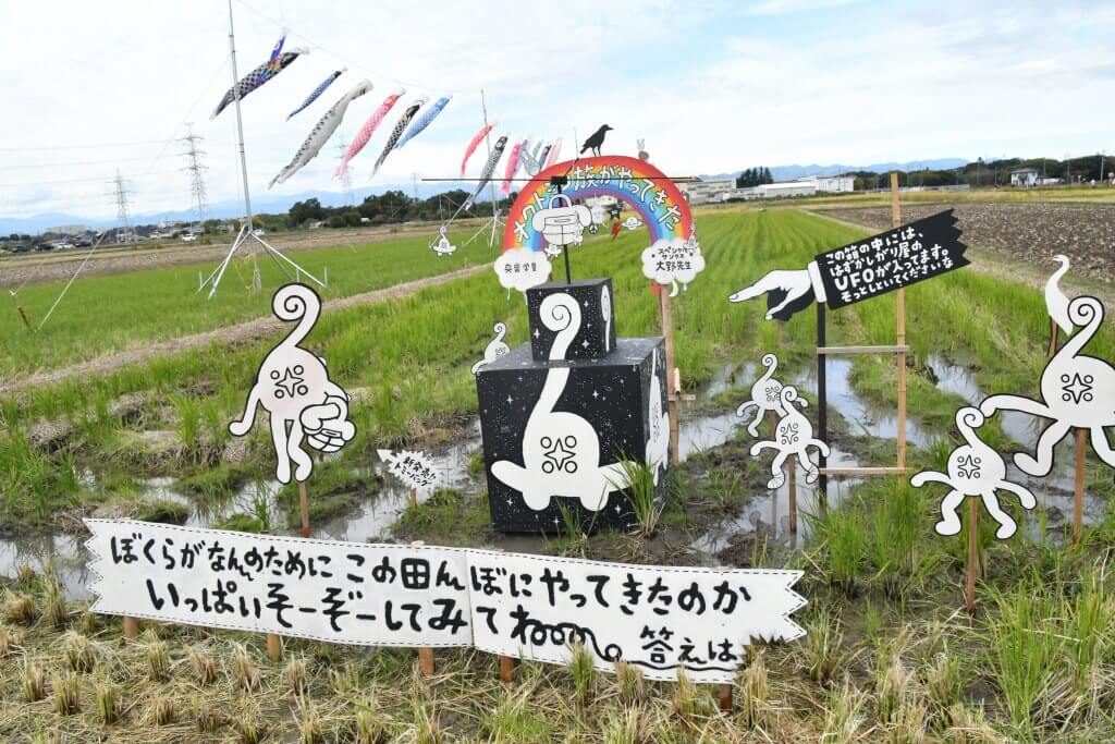 祭りは1988年、土地改良事業の完成を記念して始まり、田園風景を生かしたイベントを行おうと地元有志が実行委員会を立ち上げました。2024年からは、同市の市制施行70周年を記念した試みとして、「秋の鯉のぼりプロジェクト」を実施。家庭で眠っていた鯉のぼりが県内外から集まり、秋の空を優雅に舞いました。