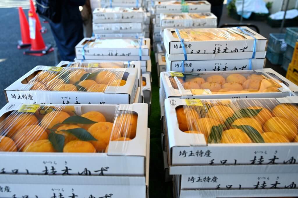 ユズの産地として知られる毛呂山町で6日、JAいるま野毛呂山農産物直売所で「桂木ゆず」の販売会「毛呂山ゆずまつり」が開かれました。「桂木ゆず」は日本最古のユズと言われており、香りの高さや果皮の厚さが特徴です。客が早朝から列をつくり、用意した約200箱(1箱約1.5~2キログラム)のユズは早々に完売しました。