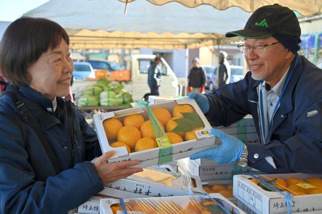 当日はJA毛呂山柚子部会の会員がユズを販売。「桂木ゆず」はジャムや飲料などに加工され親しまれている他、贈答用としても人気が高く、県外からのリピーターも多いです。