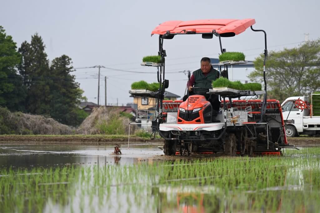 当日は同市の細田さんが、15センチ前後に生育した苗を約1ヘクタールの水田に植え付けました。