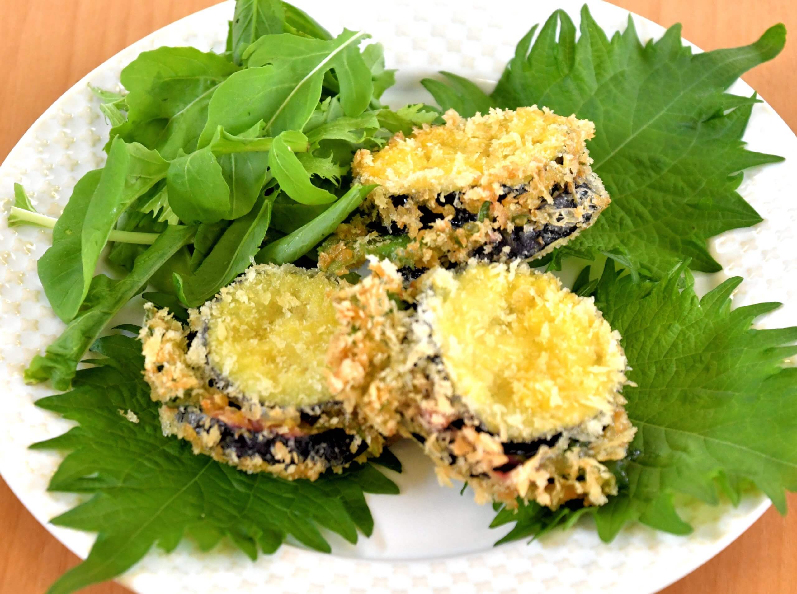 なすのしそ・チーズ入り鶏ひき肉の蒸し物