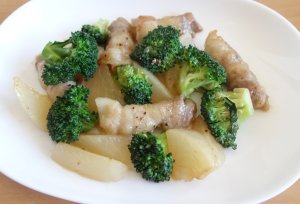 - ブロッコリーは小房に分け、芯は皮をむき短冊に切る。耐熱皿に並べて、ラップをふんわりかけ電子レンジ500Wで3分加熱する。